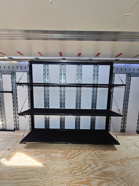 Foldable Shelving: A flexible option that can be used when needed and folded away to free wall space.